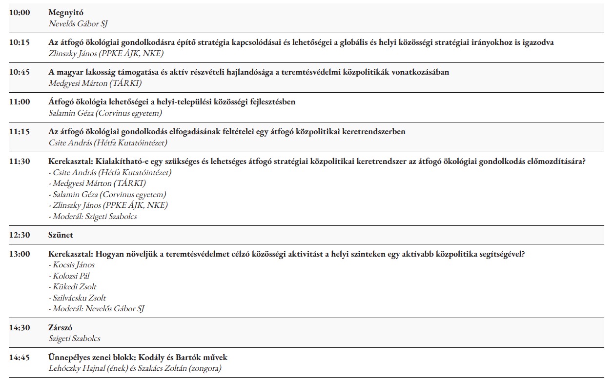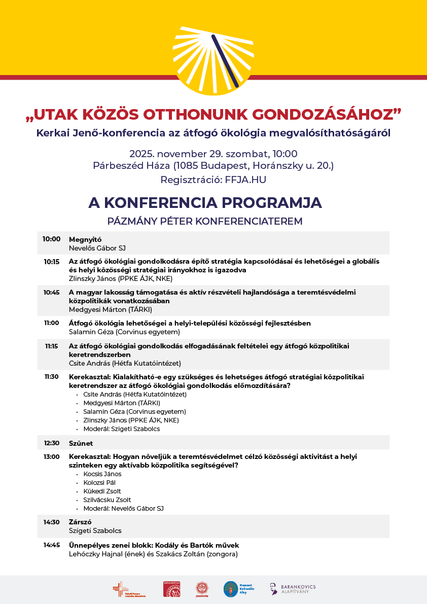 Az idei Kerkai Jenő-konferencia az átfogó ökológia gyakorlati megvalósításának lehetőségeit vizsgálja – a globális stratégiáktól a helyi közösségi cselekvésig. A Faludi Ferenc Jezsuita Akadémia Átfogó Ökológia Műhelye szakértők, kutatók és döntéshozók párbeszédére hív, hogy együtt gondolkodjunk a teremtett világ felelős jövőjéről.